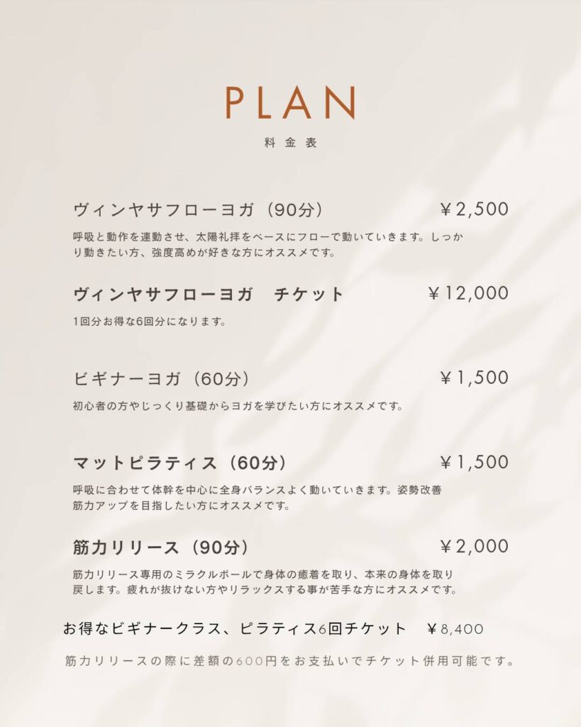 2月からスタートするマットピラティスもありがたい事に沢山のご予約を頂いています。ヨガとは違った観点から身体にアプローチを掛けますので、新しい自分を発見できると思います。